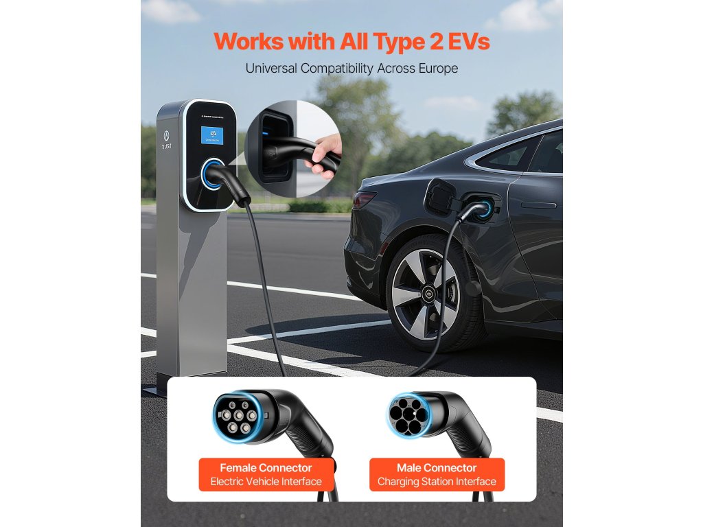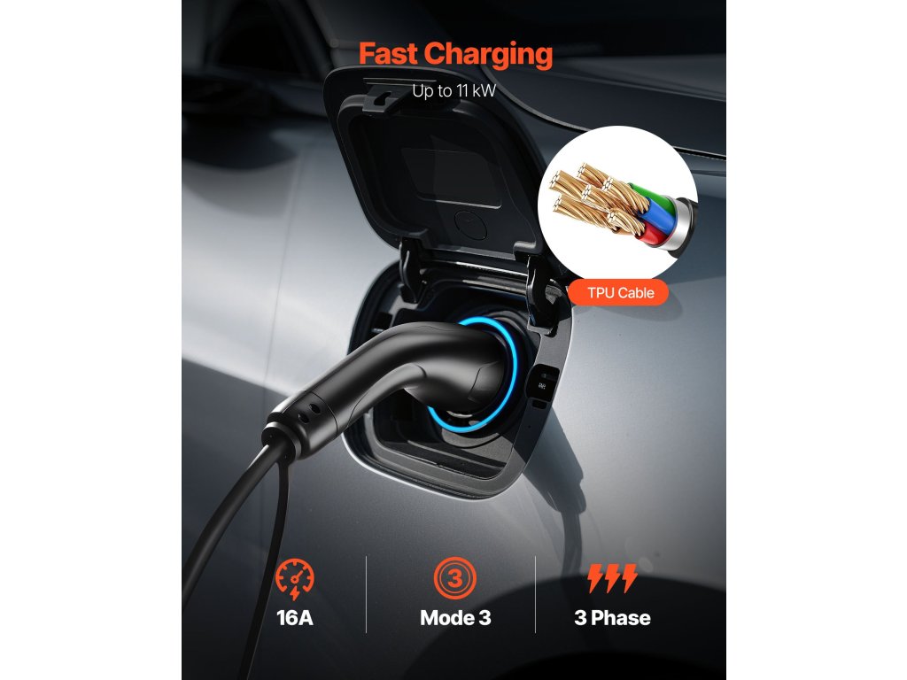 | Typ konektora | Zástrčka IEC 62196 (samec) + zásuvka IEC 62196 (samica) |