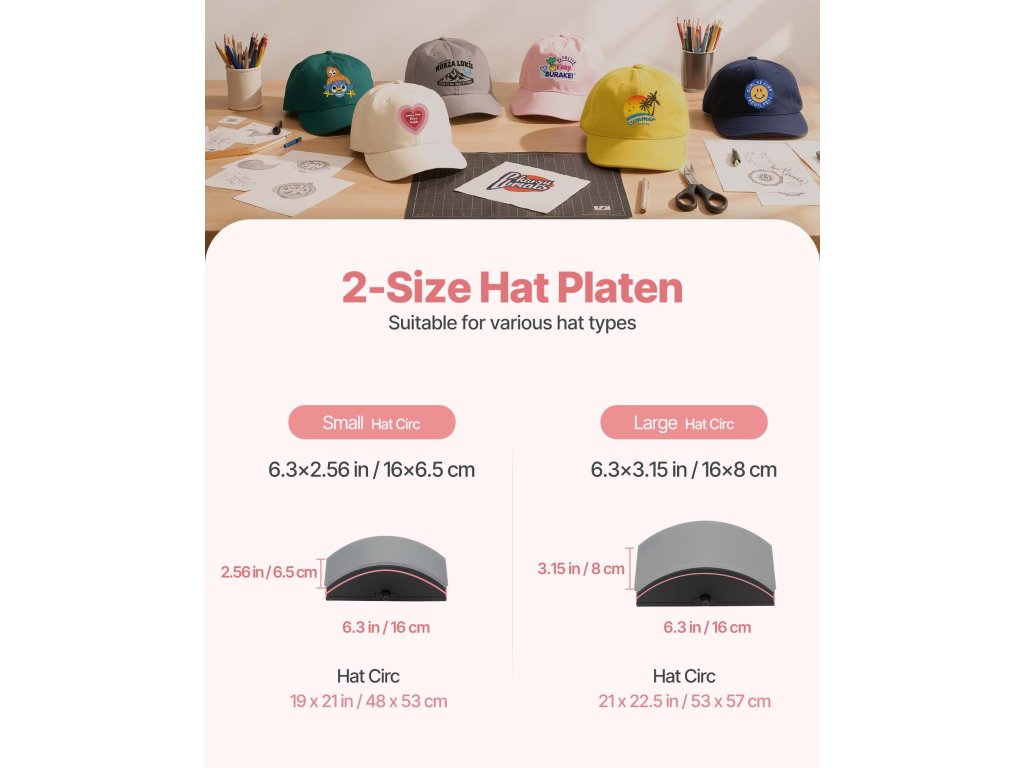 A kalapokhoz való hőprésünk pontosan szabályozható hőmérsékletet (33,8-450) és időt (akár 999 s) biztosít a különböző anyagokra történő optimális nyomtatáshoz. Több kalaplemezt tartalmaz szublimációs papírhoz, poliészterhez, pamuthoz stb. Kezdők és profik számára egyaránt ideális, biztosítva a könnyű használatot.