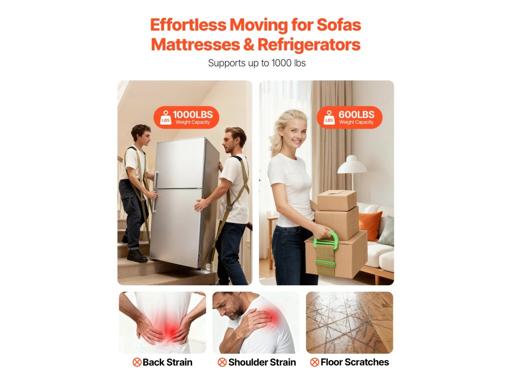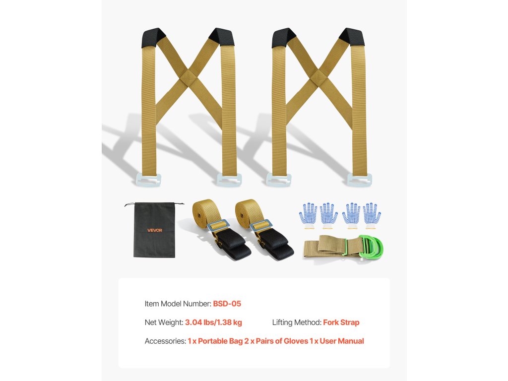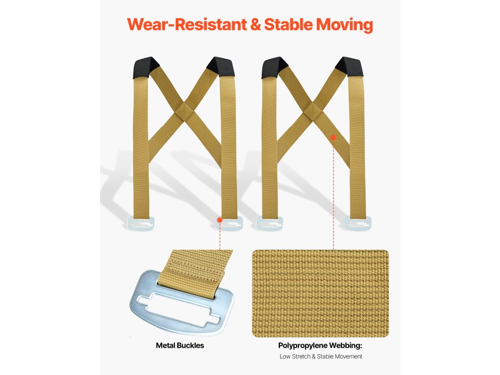 A bútormozgató heveder állítható vállpánttal és egy erős hordozóhevederrel van felszerelve. Mérete megfelelő a különböző magasságú és igényű felhasználók igényeinek kielégítésére. Akár egyedül, akár párban használjuk, stabilan használható, így kényelmesebbé teszi a hordozást.
