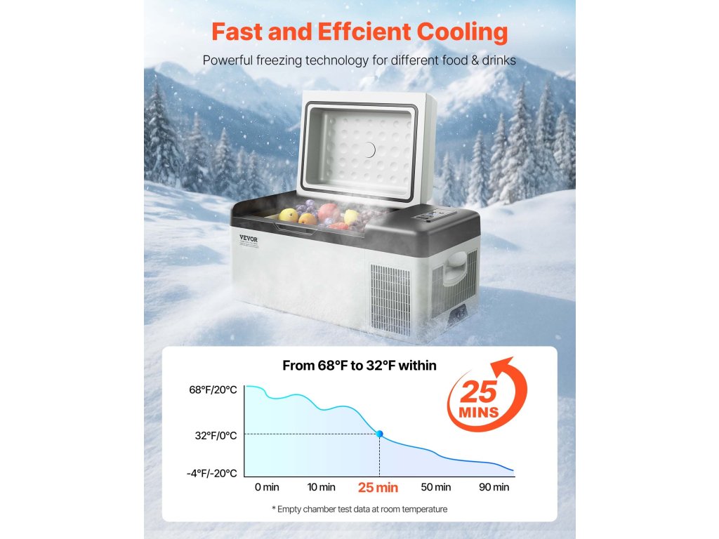 Autóhűtőnk gyors hűtési sebességgel rendelkezik, és 15 perc alatt gyorsan csökkenti a hőmérsékletet 20 ℃-ról 0 ℃-ra. És 10 órán át képes hűteni az áramellátás kikapcsolása után, így utazás közben is élvezheti a finom és friss ételeket.