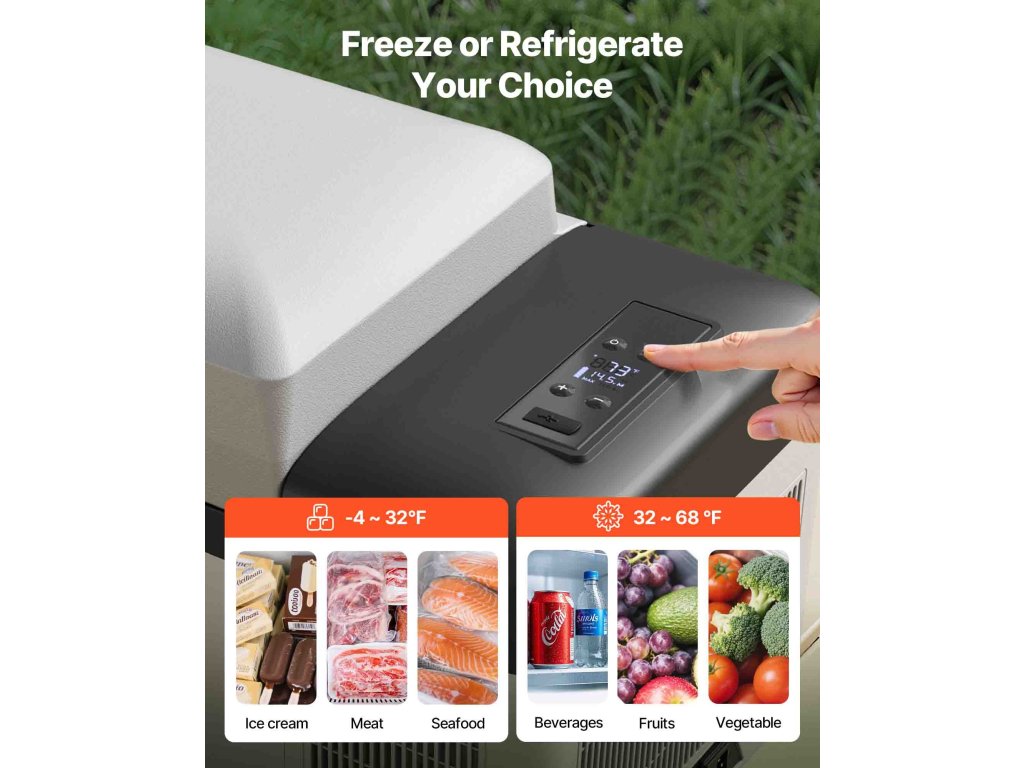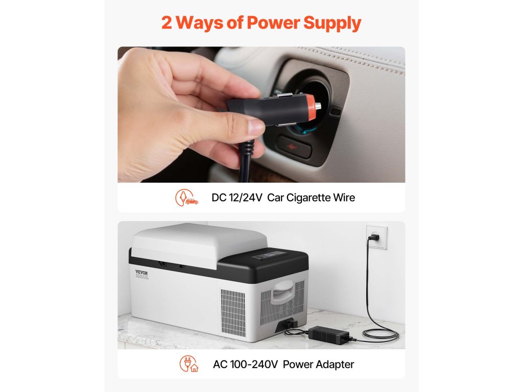 A 12 V DC / 24 V DC és 110-240 AC hűtő/fagyasztó 12 V feszültségen működik, és csatlakoztatható az autó szivargyújtójához és a háztartási áramforráshoz. A hordozható kompresszoros hűtőszekrény alkalmas lakóautókhoz, kempingezéshez, hajókhoz, kempingezéshez, horgászathoz, utazáshoz és szabadtéri tevékenységekhez.