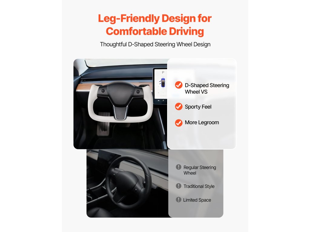 A 2016-2023-as Tesla Model 3-hoz tervezett kormánykerék pontosan alkalmazkodik a járművéhez, és javítja a kezelhetőséget és a vezetési kényelmet. Bőrből és szénszálból készült, D-alakú kialakítása csúszásmentes textúrával biztosítja a magabiztos és kényelmes vezetést.