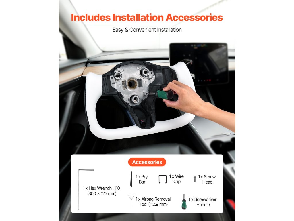 Ezt a lapos aljú kormánykereket négy egyszerű lépésben szerelheti fel: 1) szerelje le a széria kormánykereket; 2) szerelje le az eredeti alkatrészeket; 3) szerelje fel az eredeti alkatrészeket az új kormánykerékre; 4) szerelje fel az új kormánykereket. Nincs szükség különleges képességekre - percek alatt elvégezhető a frissítés.