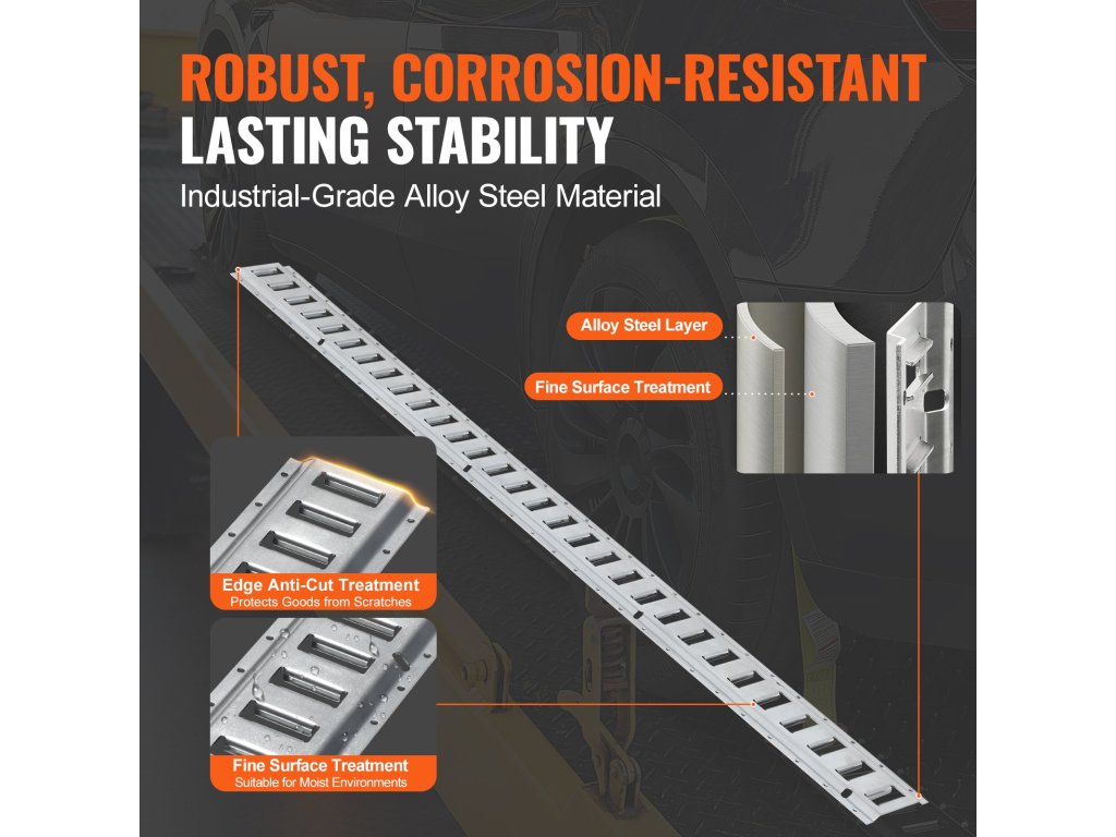 A kiváló minőségű rozsdamentes acélból készült és a tartósság érdekében kezelt E-track sínek készen állnak arra, hogy mindent kibírjanak. Nincs rozsda, nincs korrózió - csak megbízható teljesítmény és nyugalom. A vágásgátló élek megvédik áruit a karcolásoktól.