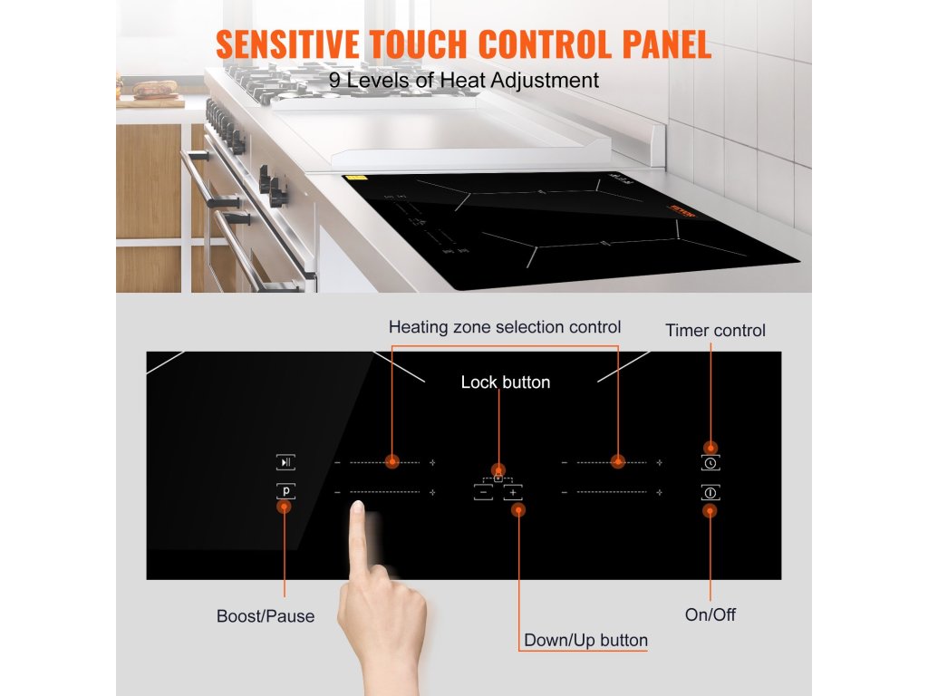 A VEVOR elektromos főzőlap érintésvezérléssel mindenki számára könnyen használható