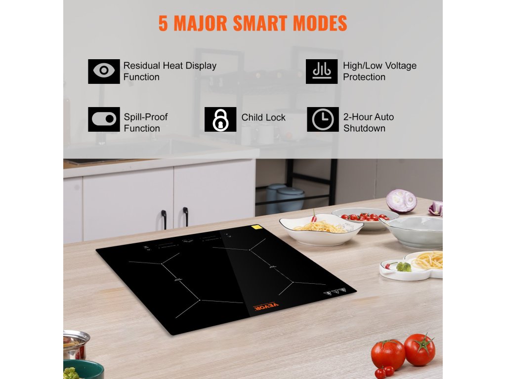 Az elektromos főzőlap olyan funkciókkal van felszerelve, mint az automatikus kikapcsolás, a maradék hőre való figyelmeztetés , a gyermekbiztonság, a magas és alacsony feszültség elleni védelem és a túlmelegedés elleni védelem. Ezek a funkciók biztosítják a főzés biztonságát, és nyugalmat nyújtanak a terhes nők és az idősek számára.