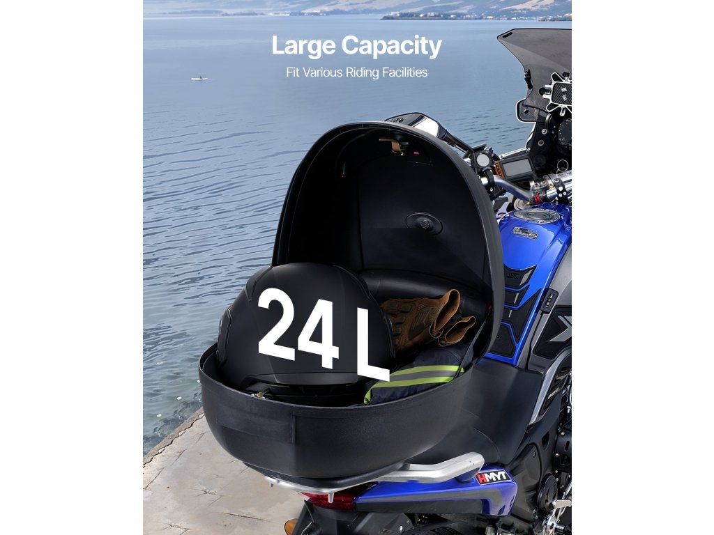 24 literes motorkerékpár tetődoboz, vízálló, levehető, fényvisszaverő panellel