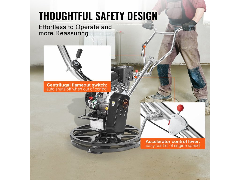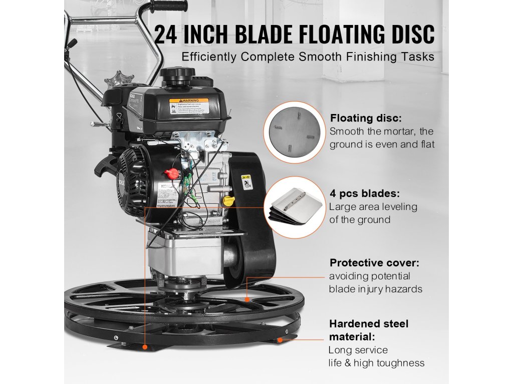 24"-os betonsimító simítóval, simítólappal, 6 lóerős benzinmotorral