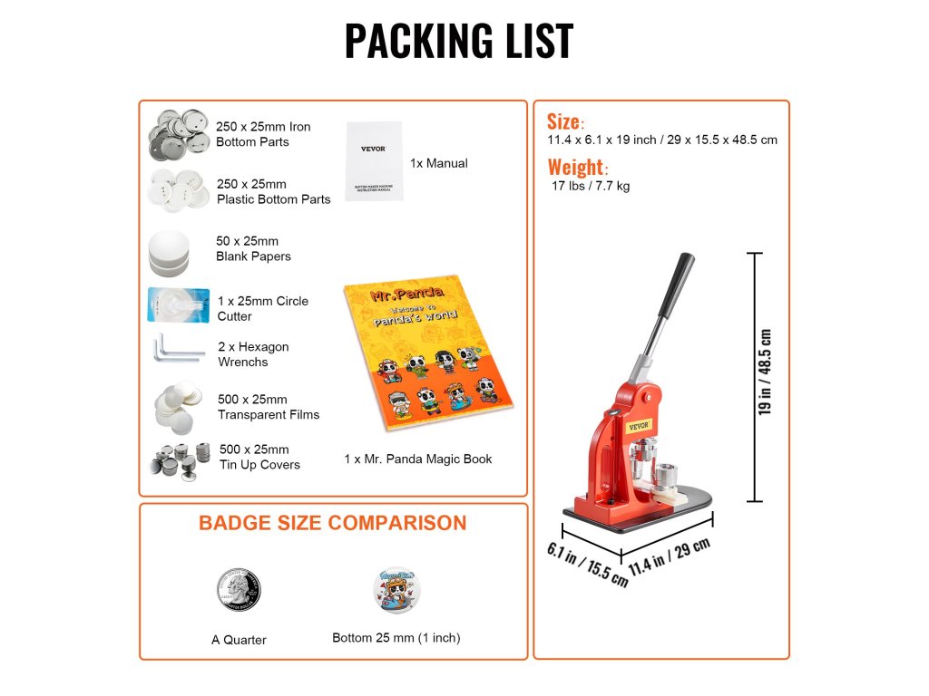 25 mm-es jelvénygyártó gép, 500 darab alkatrész, kör alakú vágó és használati utasítás
