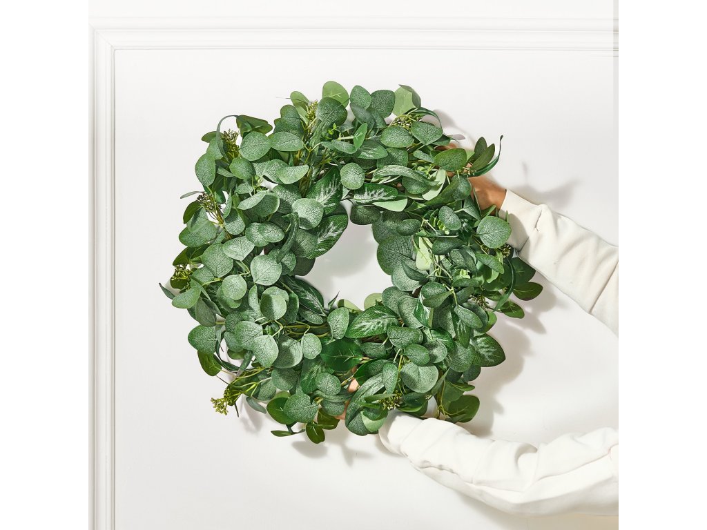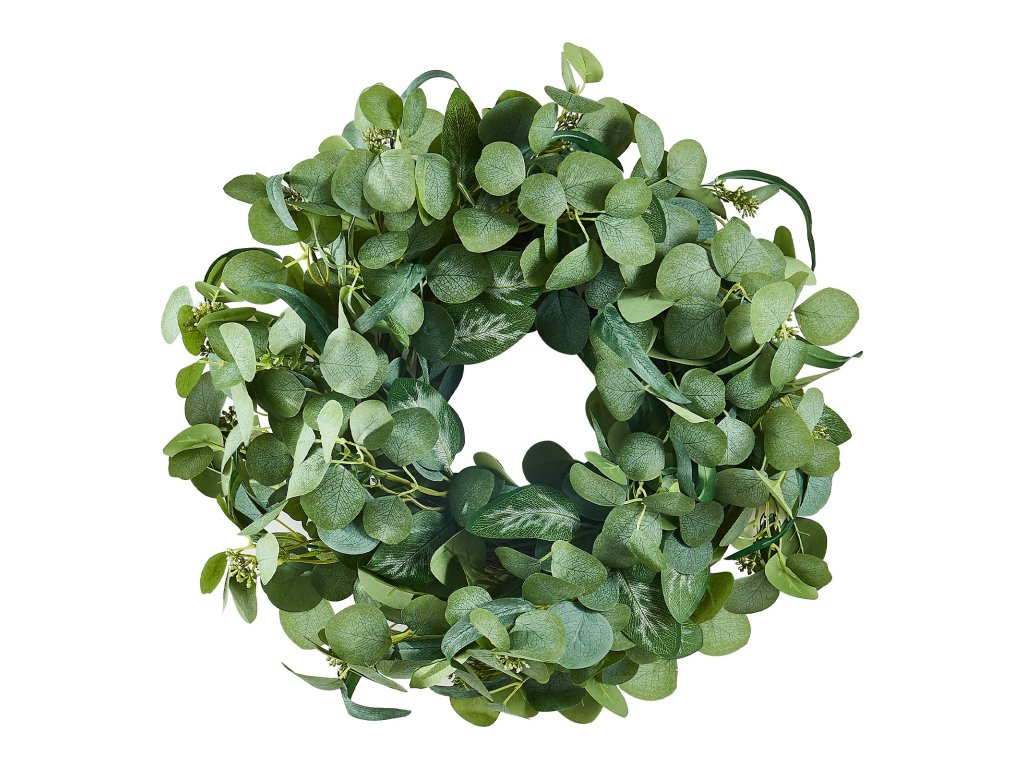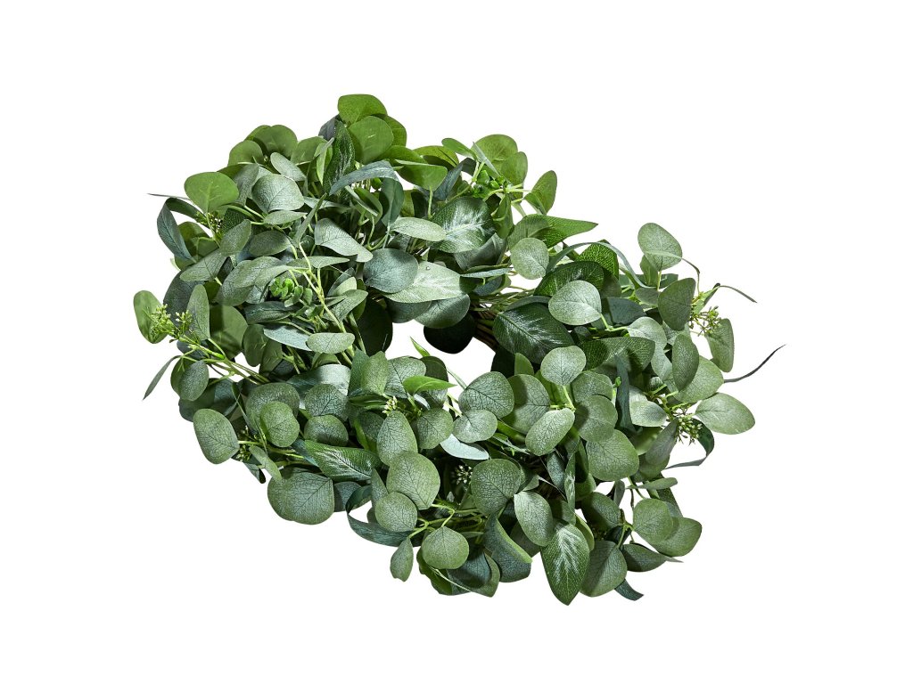 26 db-os műdekoratív koszorú zöld színben, eukaliptusz és bogyók díszítésével