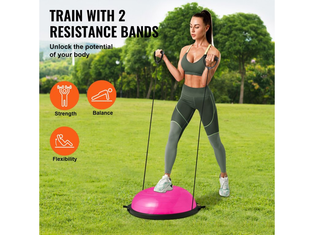 Ez az egyensúlyozó labdás tréner felszabadíthatja a testedben rejlő lehetőségeket, javíthatja az erőt, az egyensúlyt és a rugalmasságot. Ideális az általános vitalitás növelésére és az edzés hatékonyságának maximalizálására. Félkör alakú stabilitási labdánk két levehető edzőkötéllel, puha habszivacs fogantyúkkal rendelkezik.
