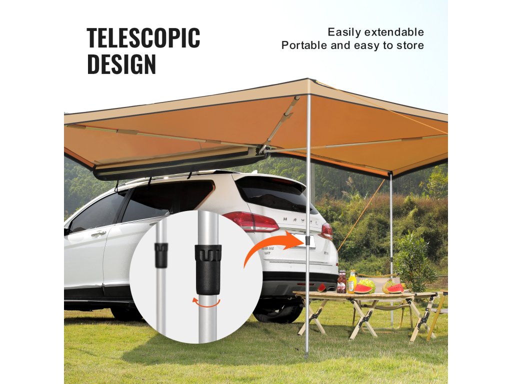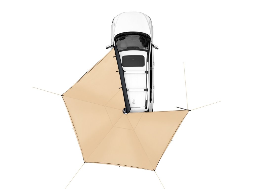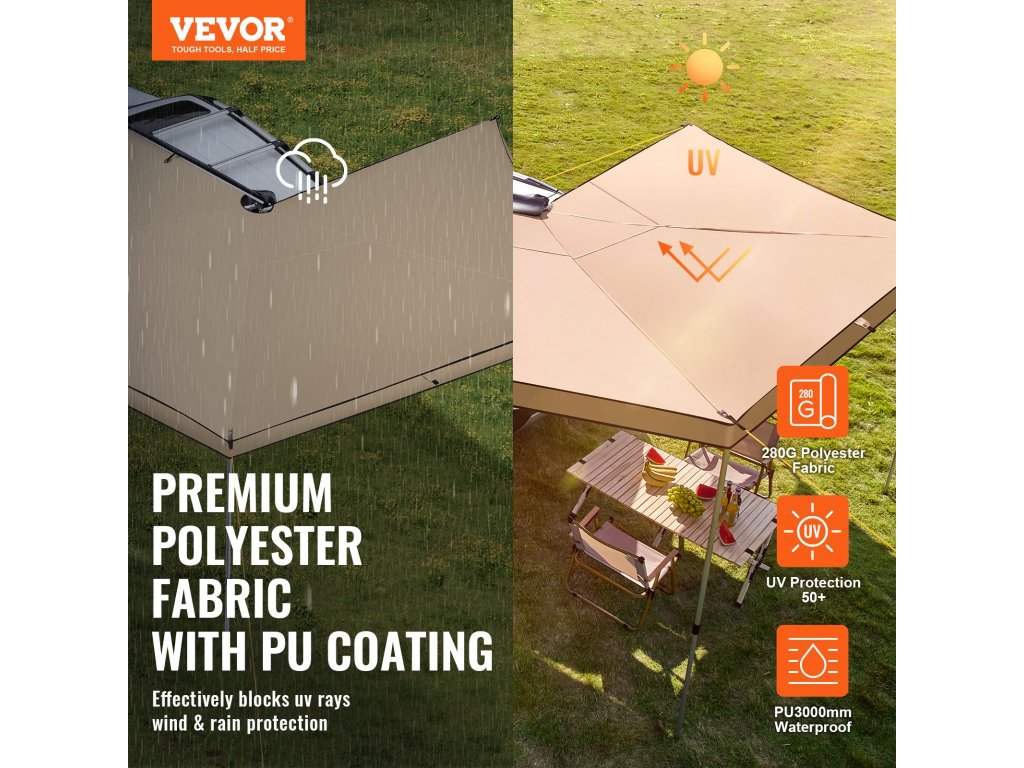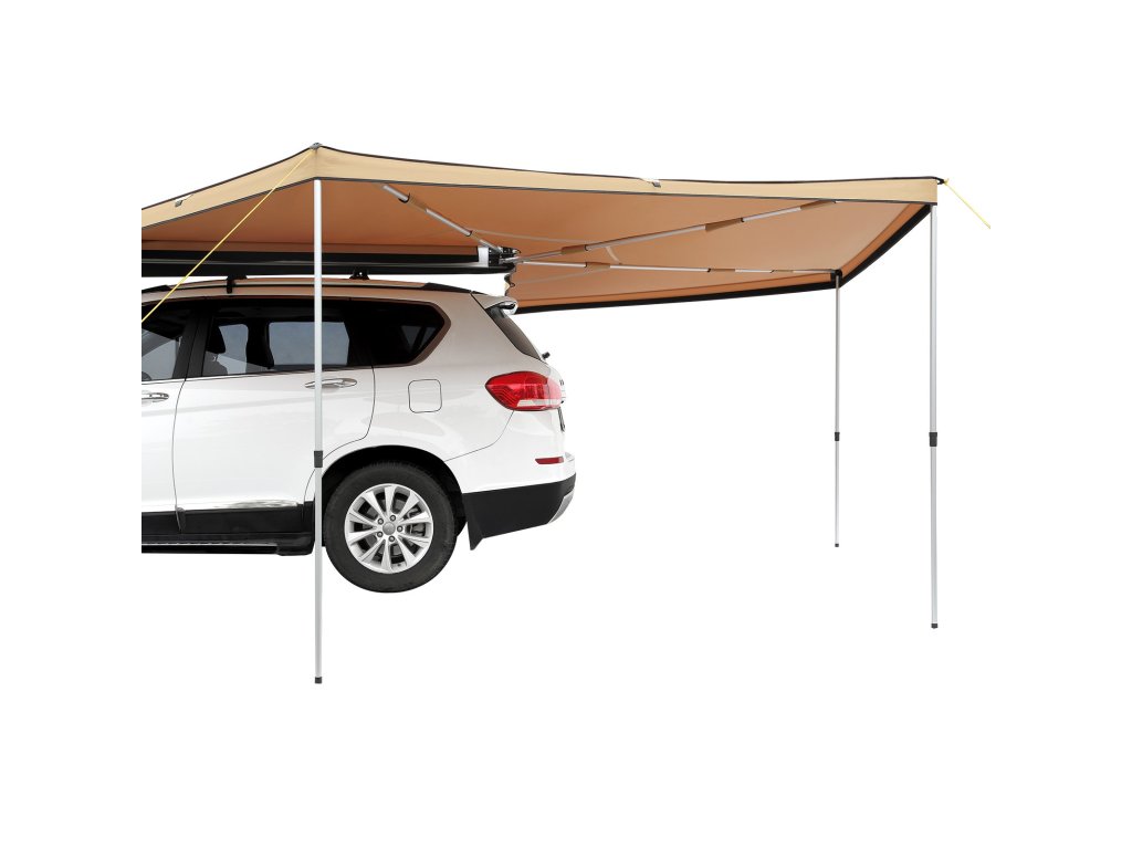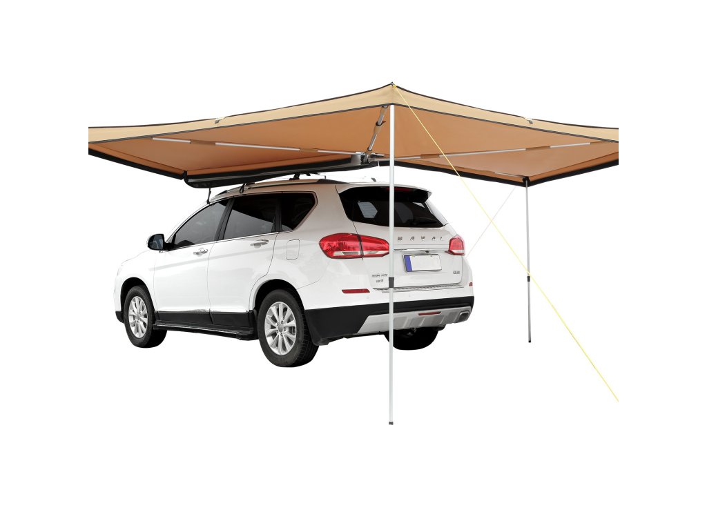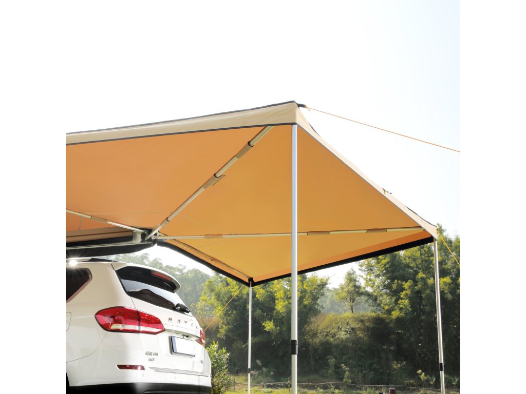 A jármű oldalsó napellenzője tágas menedéket nyújt UV-, szél-, víz- és hőszigeteléssel. PVC-zsákkal szállítjuk a helytakarékos elhelyezéshez az autó tetején. A jármű oldalára és hátuljára egyaránt illeszkedik, és minden időjárási viszonyok között menedéket nyújt piknikezéshez és kempingezéshez.