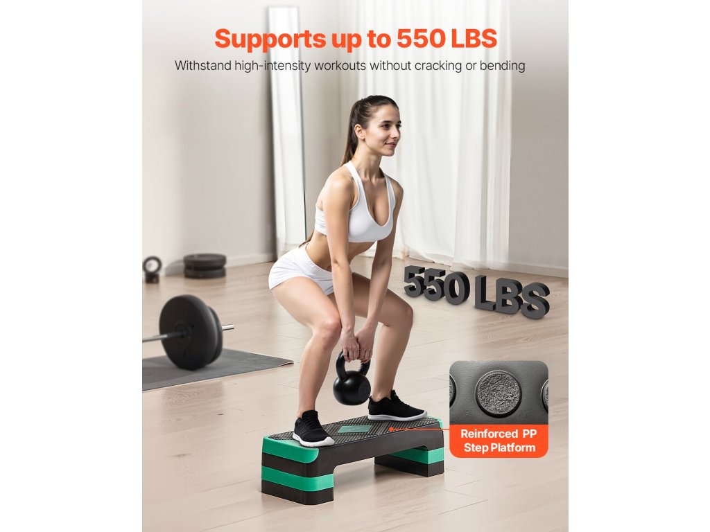 A megerősített PP lépcsőplatform repedés vagy elhajlás nélkül ellenáll a robbanásszerű ugrásoknak, súlyzóütéseknek és intenzív kardióedzéseknek. Sportolóknak épült, edzőtermek számára megbízható.