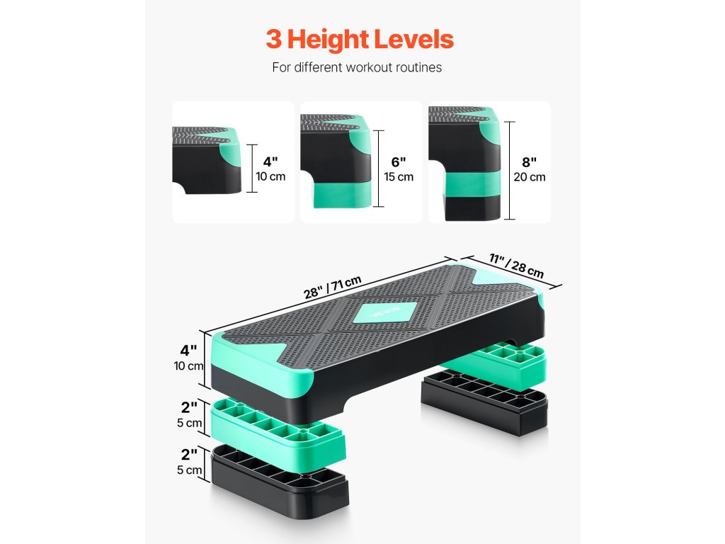 28 hüvelykes aerobik lépcső, állítható, 4 tartozékkal, csúszásmentes