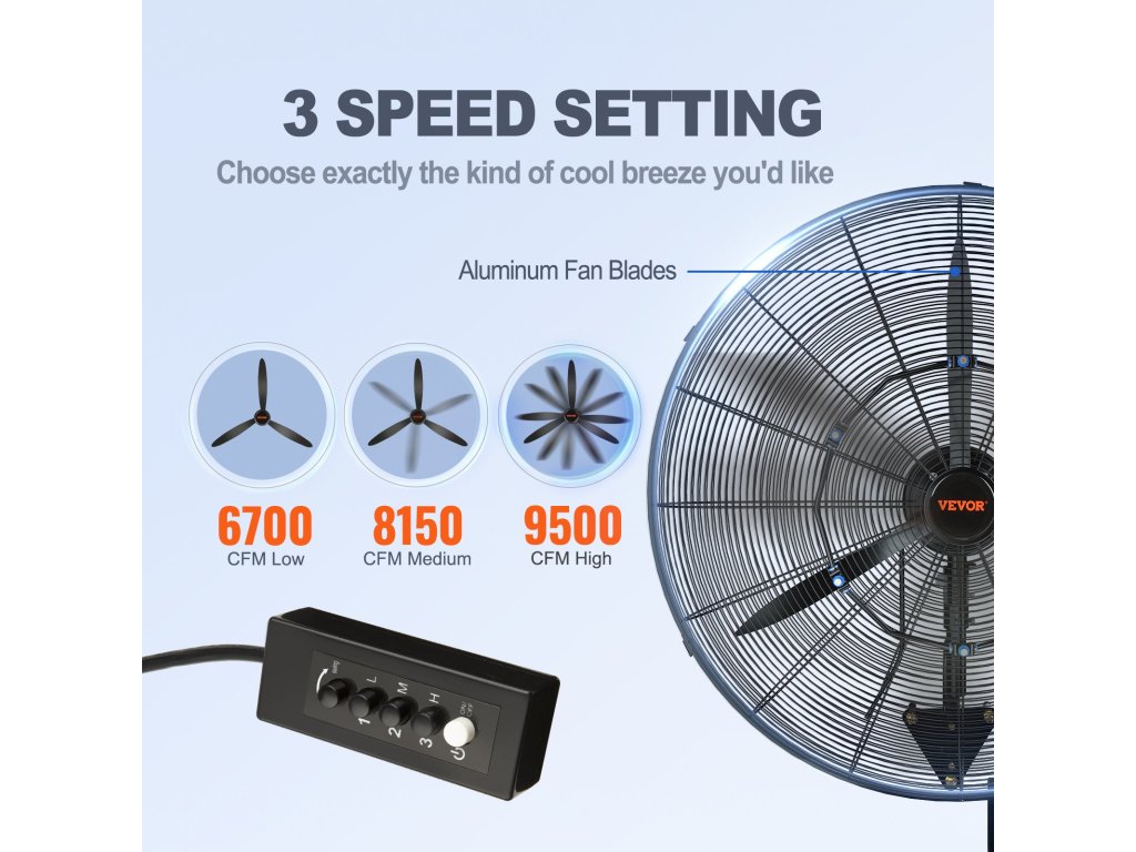 29,5 hüvelykes vízálló párásító ventilátor, 3 sebességfokozat, 9500 CFM