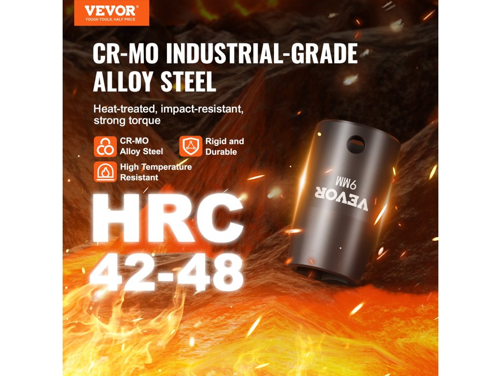A foglalat hatszögletű kialakítása munka közben rést hoz létre az anya és a szélek között, megakadályozva a túlzott súrlódást és kopást. Ellenáll a nagyobb ütőerőnek és hatékonyan távolítja el a csavarokat.