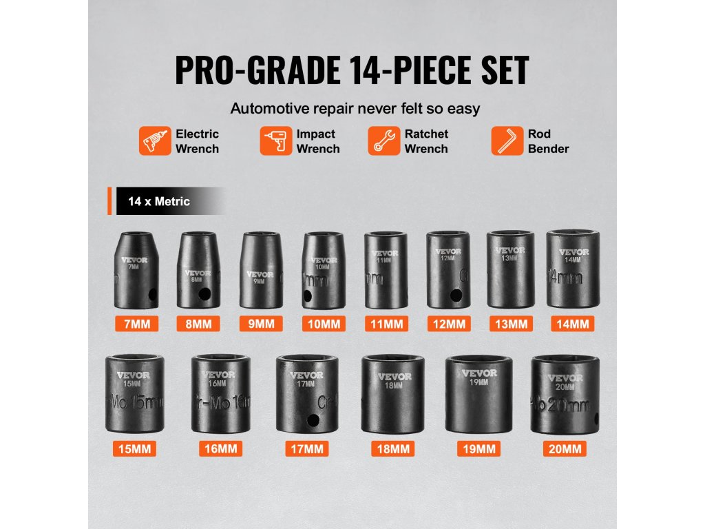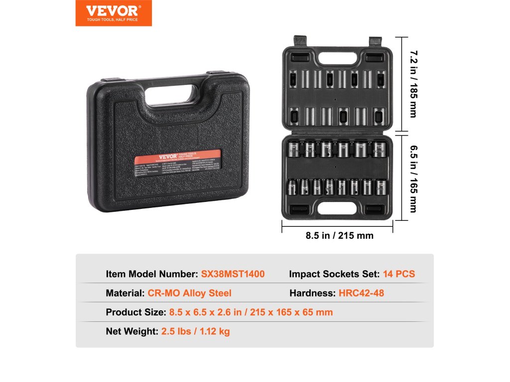 Professzionális és hordozható ütvecsavaros dugókulcs-készletet keres? a VEVOR 14 darabos ütvecsavaros dugókulcs-készlet teljes körű szerszámkészletet kínál, amely különösen alkalmas a különböző márkájú autók javításához.