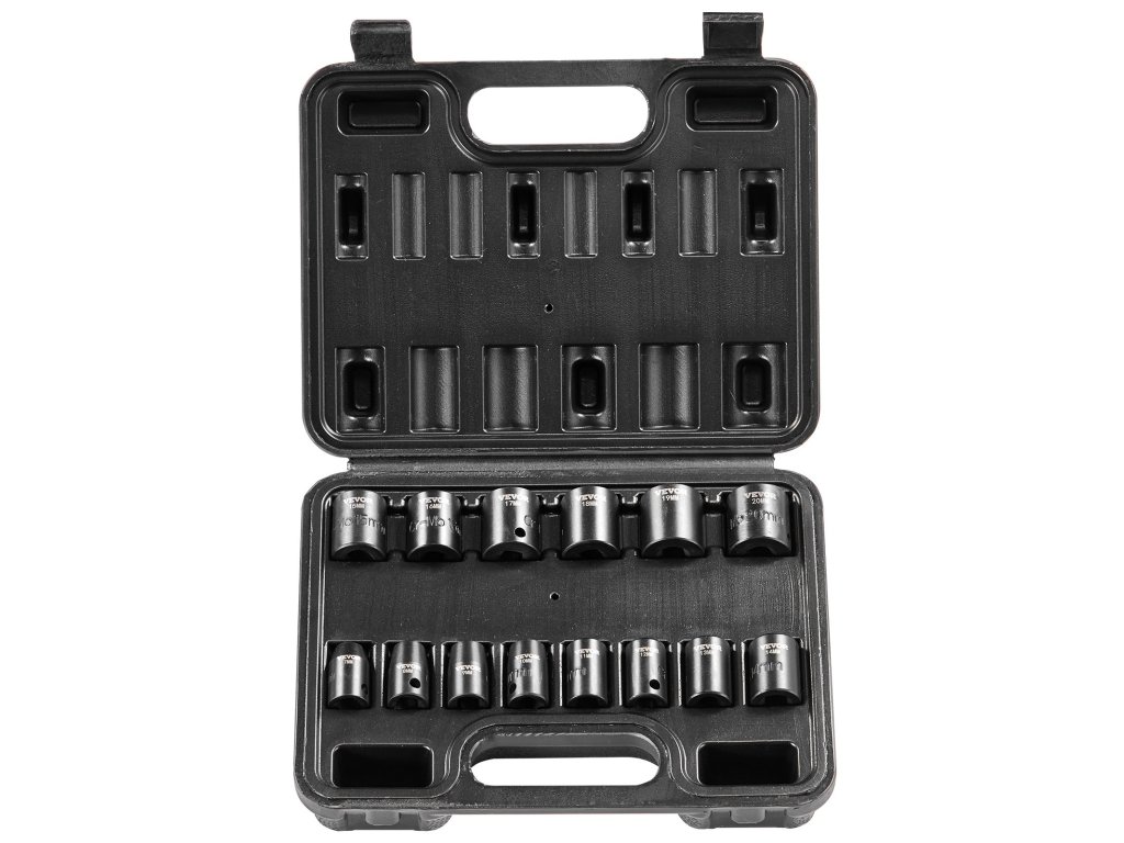 3/8"-os dugókulcs készlet, 14 részes, metrikus, 7-20 mm, 6 élű, króm-mo acél