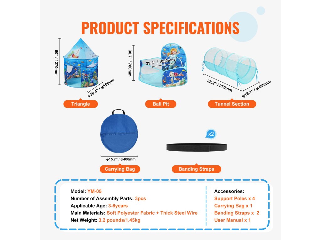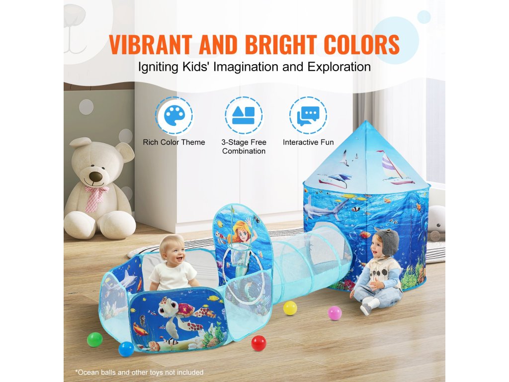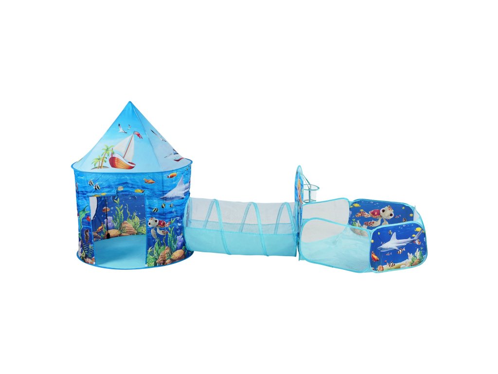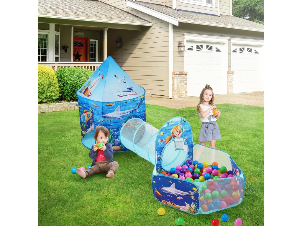 3 az 1-ben gyerek játszósátor alagúttal és karikával, beltéri/kültéri