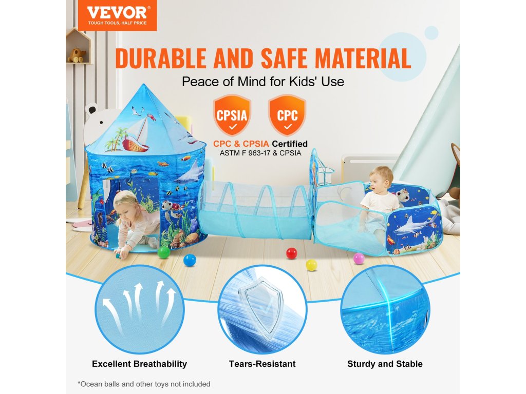A puha poliészterszövetből és erős acélhuzalos tartóból készült alagút kényelmet és stabilitást biztosít, valamint megfelel a CPSIA-szabványoknak és a CPC-tanúsítványnak, így a gyermekek biztonságosan játszhatnak az alagútban.