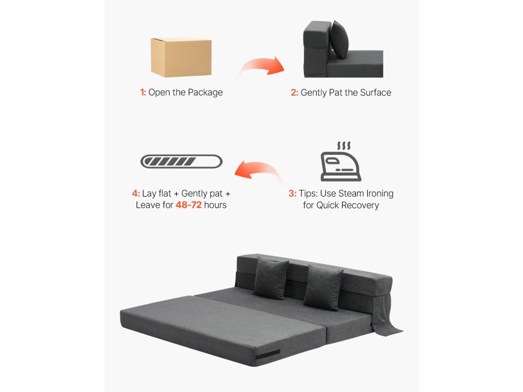 Nincs szükség összeszerelésre - csak húzza ki, és már használhatja is! Könnyedén válthat a kanapéágy és a kényelmes párna között, így időt és energiát takaríthat meg.