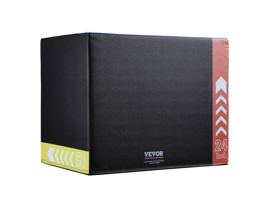 3 az 1-ben pliometrikus doboz, magasság 75 cm/61 cm/51 cm, csúszásmentes, fekete