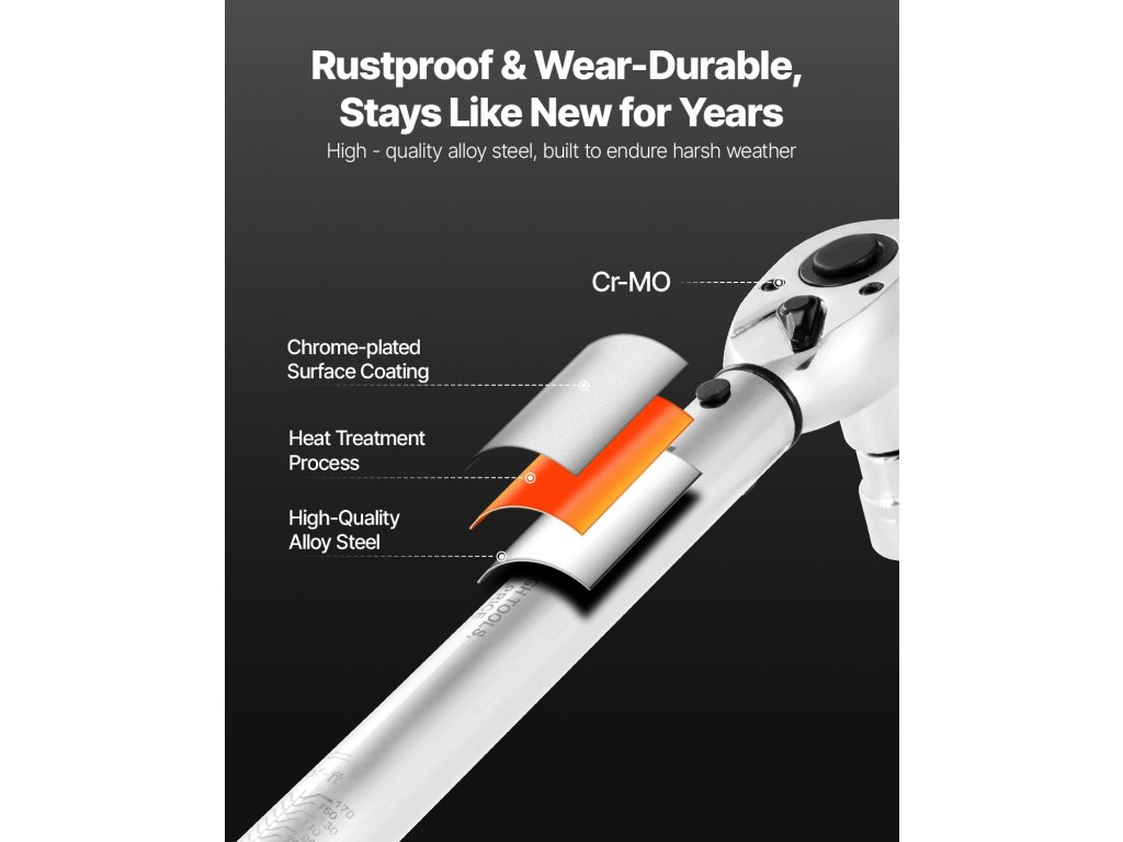 A kiváló minőségű ötvözött acélból készült és hőkezelt, krómozott felületű nyomatékkulcs kivételes szilárdságot, pontosságot és tartósságot biztosít, így ideális választás a professzionális rögzítési feladatokhoz.