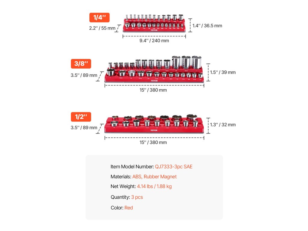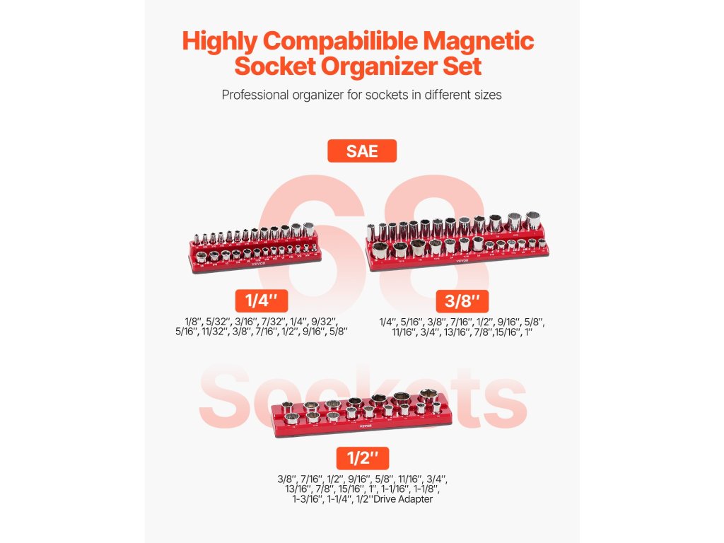 VEVOR Mágneses fiókszervező 3db piros SAE-hez