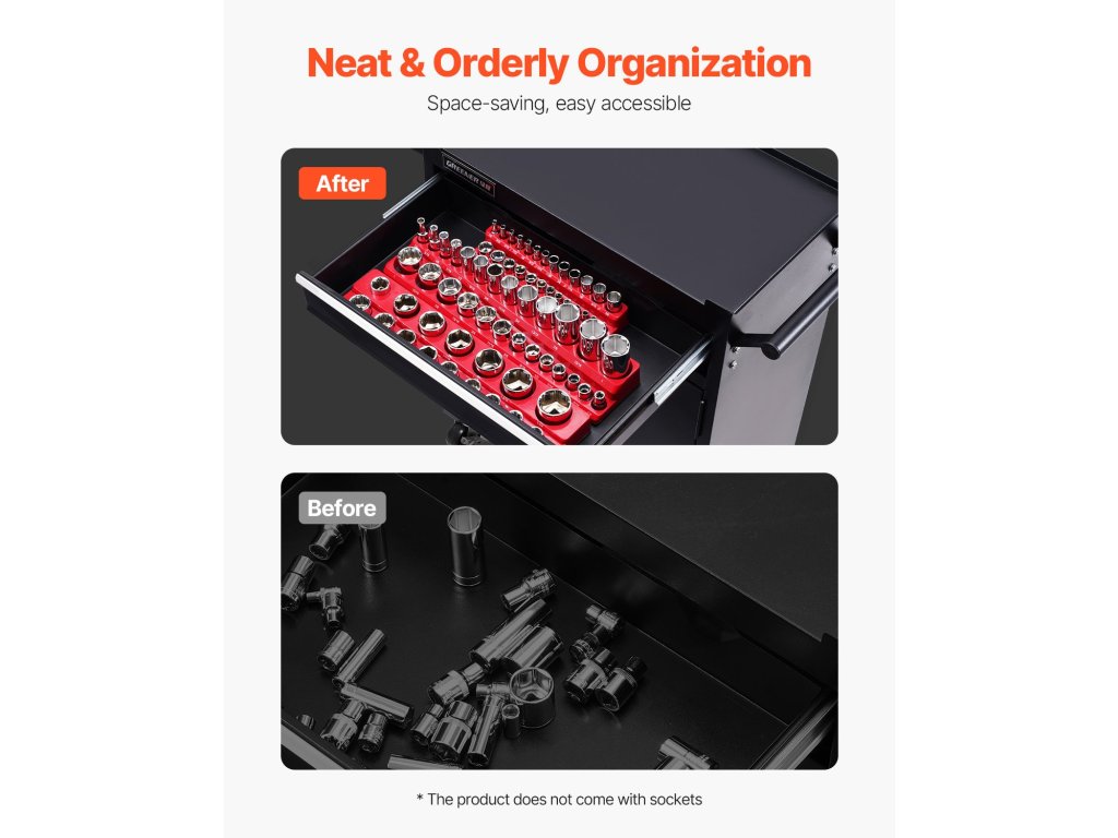 A kényelem és komfort érdekében átgondoltan tervezett SAE fiókszervező akár 68 fiókot is befogad, így a szerszámokhoz való hozzáférés és tárolás zökkenőmentes és intuitív, valamint kiváló minőségű kivitelezést tükröz.