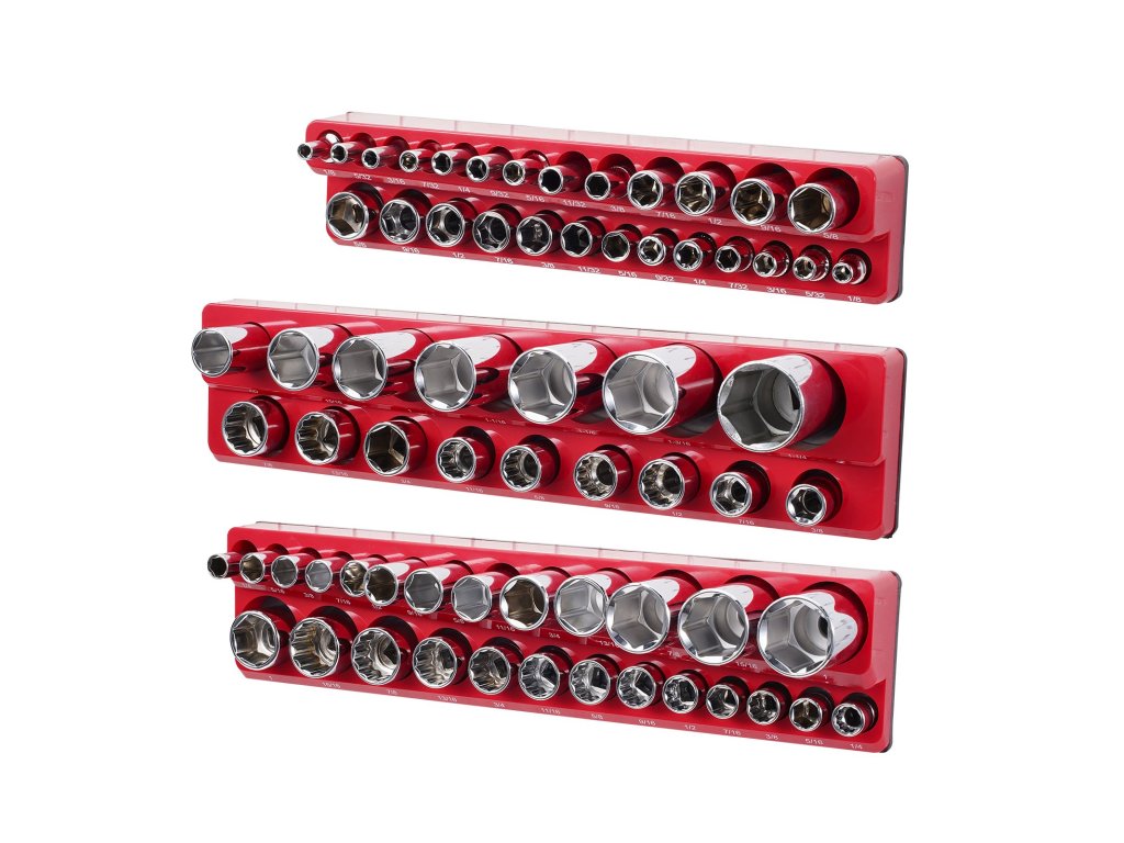 3 db-os mágneses szervező 1/4'' 3/8'' 1/2''-os meghajtókhoz, 68 db befogadására alkalmas