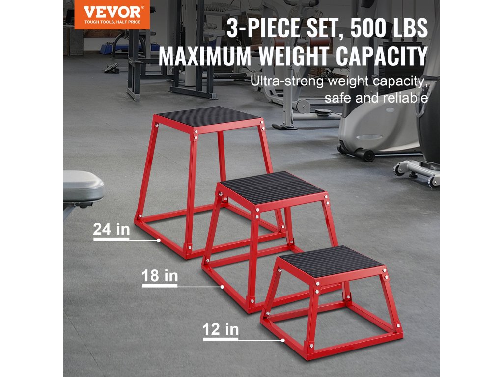 3 db-os pliometrikus dobozkészlet 12/18/24 hüvelykes, csúszásmentes, platformmal