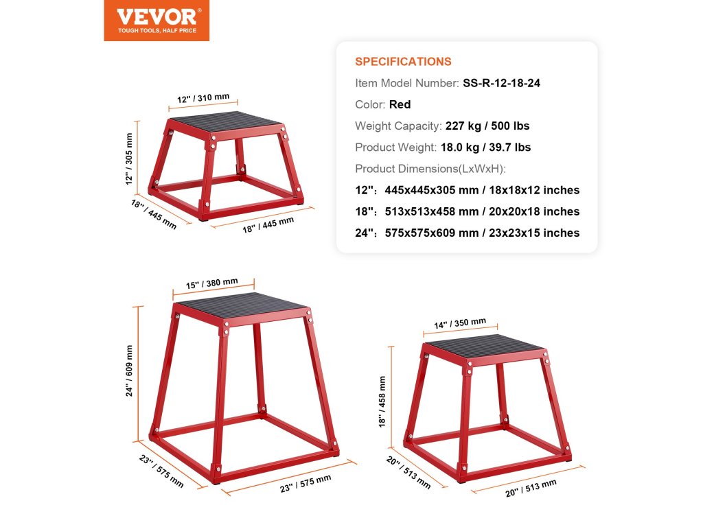 Különböző magasságokban, 12 hüvelyk, 18 hüvelyk, 24 hüvelyk magasságban is végezhet hosszabb edzéseket. A rendkívül erős, 500 kilós teherbírás megfelel a változatos edzési igényeknek.