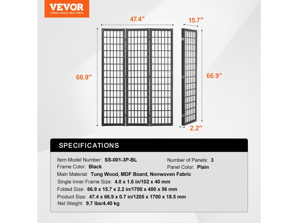 Ez a térelválasztó képernyő kiváló minőségű, nem szőtt anyagból készült, amely tartós és szakadásálló, ugyanakkor vízálló és könnyen tisztítható, így minden adatvédelmi igényt kielégít. A stabil támasztólábak a 0,7 hüvelyk / 18,5 mm vastag fa kerettel együtt stabilitást adnak a használat közbeni nyugalom érdekében.