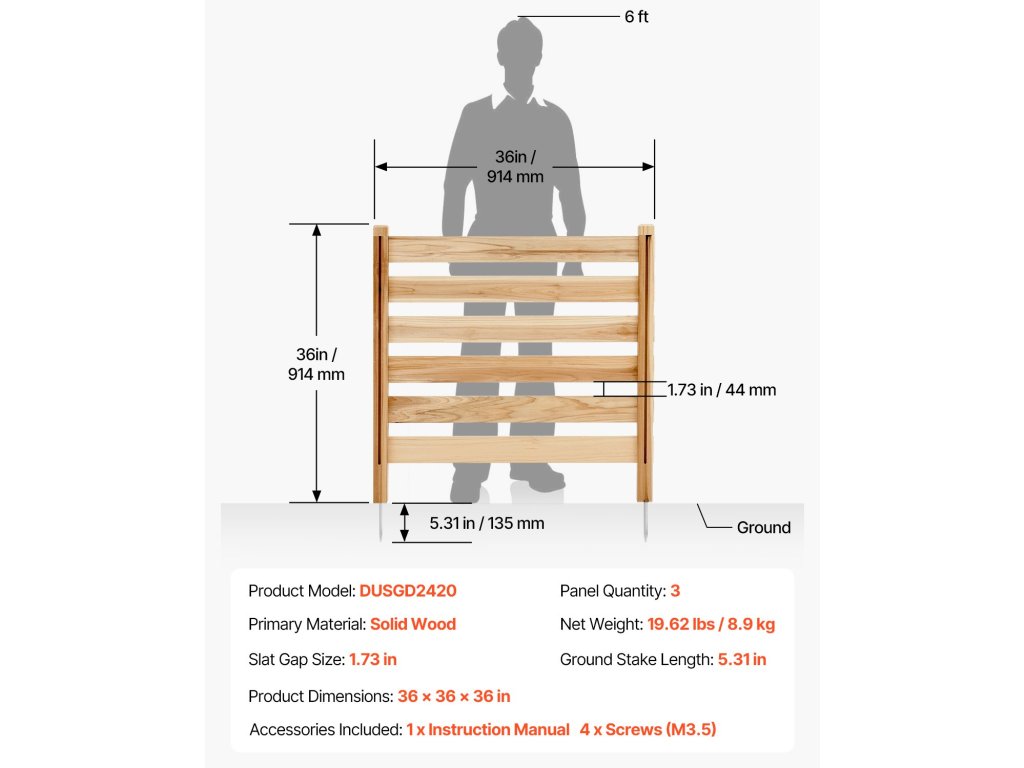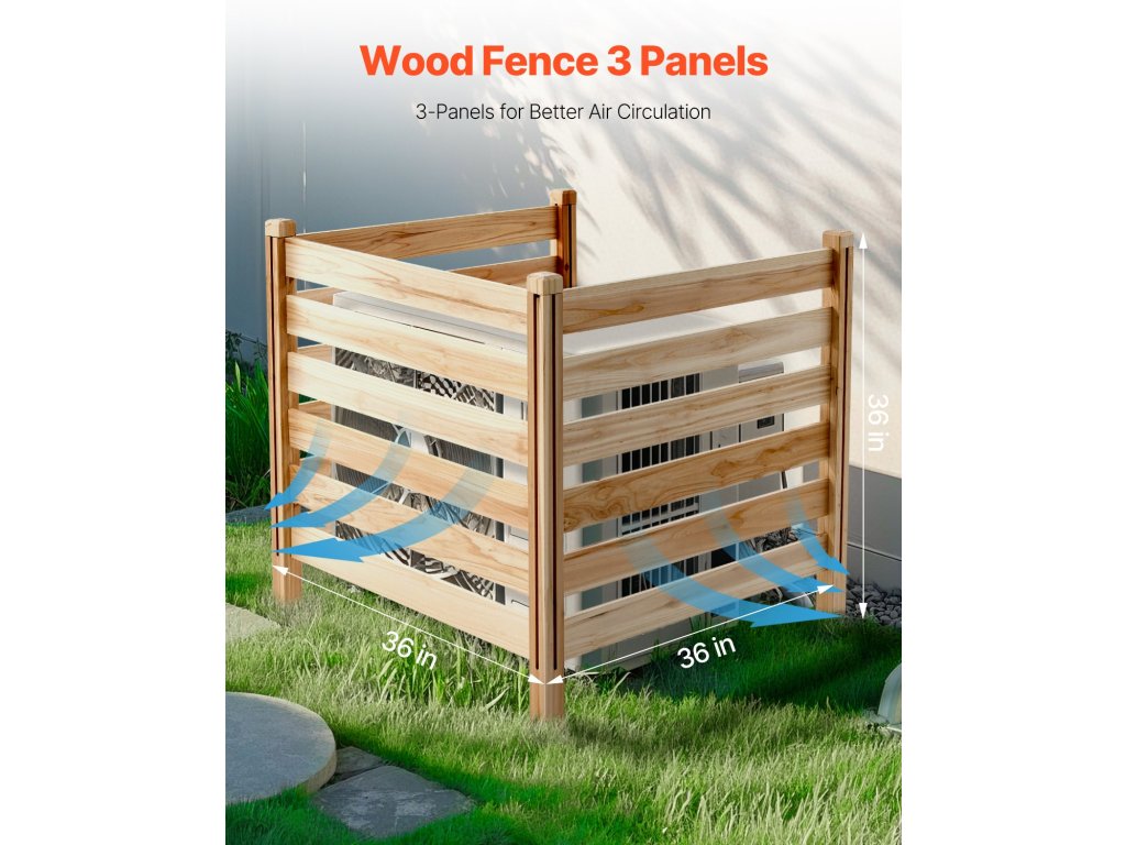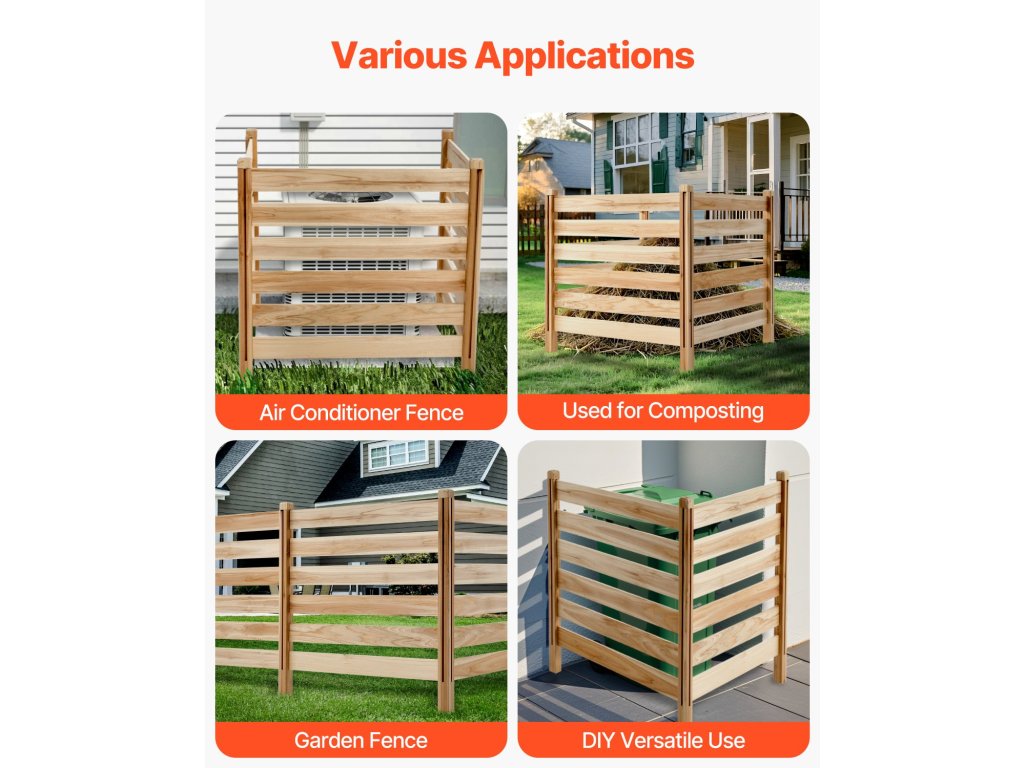 A természetes fapanelekből és erős fém földi karókból készült légkondicionáló kerítés stabil, hőálló és úgy tervezték, hogy hosszú távú kültéri használatot bírjon ki repedés vagy vetemedés nélkül.