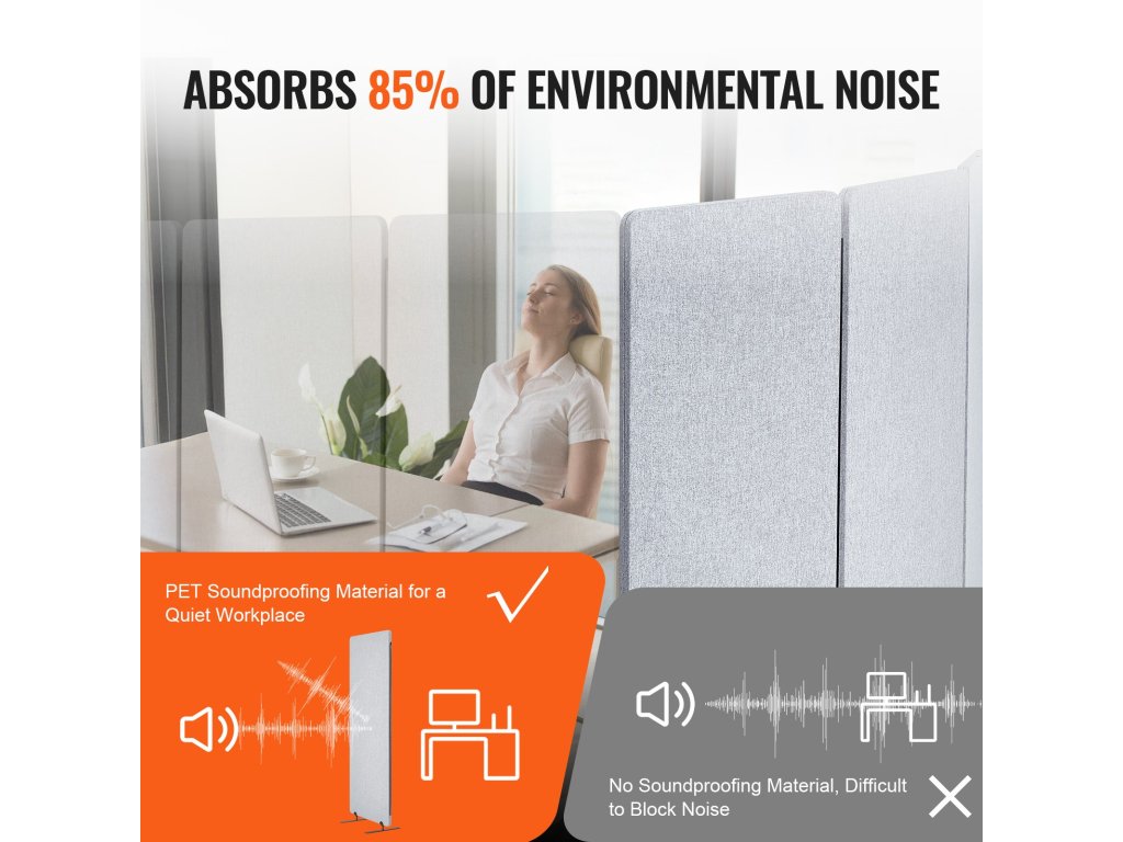 Ez a szobai paraván PET hangszigetelő anyaggal van ellátva, amely a környezeti zajok akár 85%-át elnyeli. Garantálja a jobb magánéletet és csendesebb környezetet teremt.