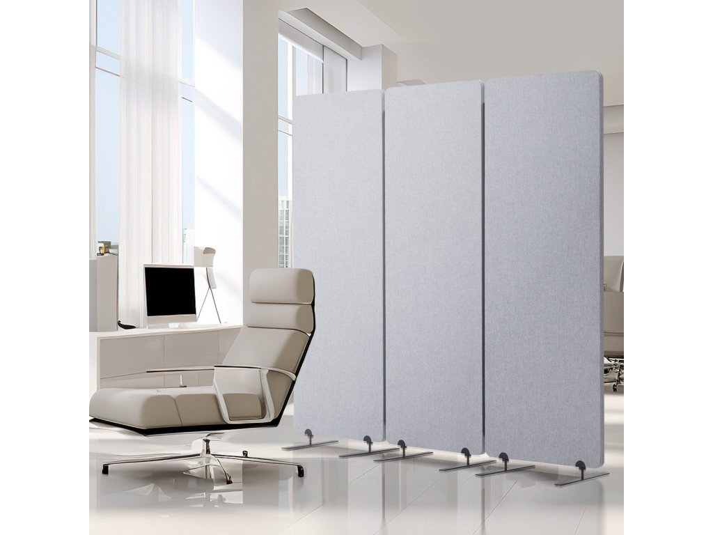 3 paneles paraván, állati poliészter, hangszigetelt, szürke, álló