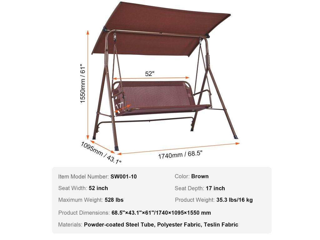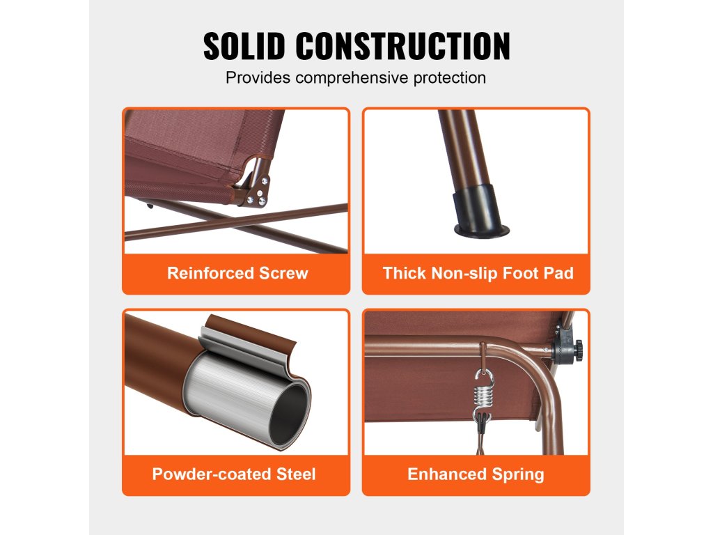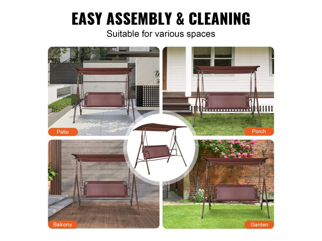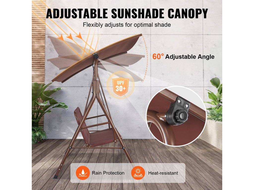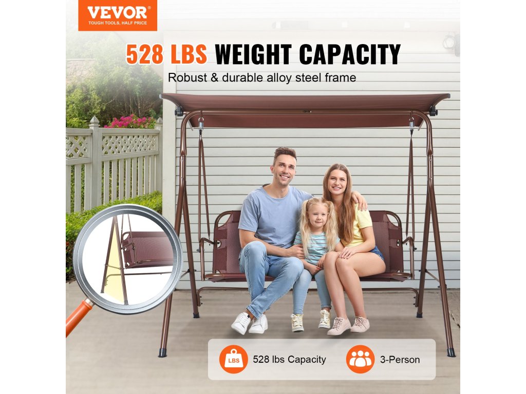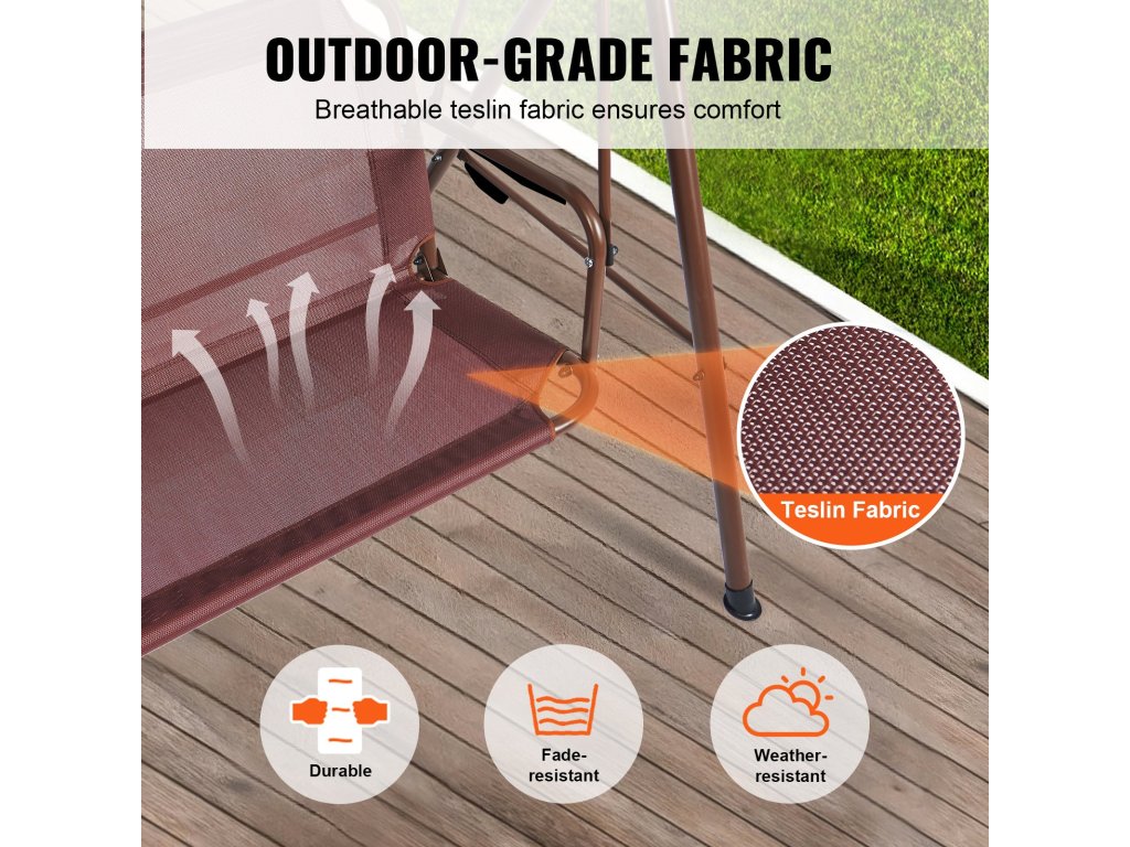 Ez az ötvözött acélból készült függő teraszszék stabil háromszög alakú tartószerkezettel rendelkezik, amely akár 528 kg-ot is elbír, és 3 személy számára biztosít helyet a szabadtéri kikapcsolódáshoz.