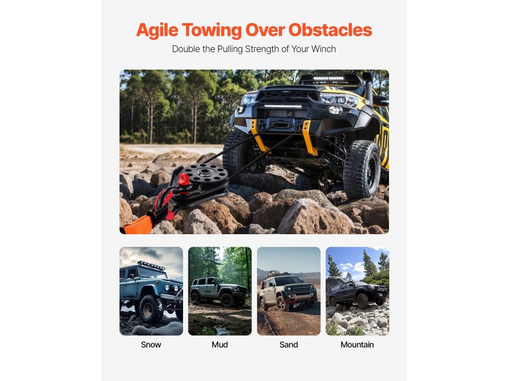 Növelje csörlője húzóerejét a rögzítő blokk csigával! Csökkenti a csörlőre nehezedő igénybevételt és meghosszabbítja az élettartamát. Akár sárban, homokban vagy hóban navigál, ez a blokk segít járművének könnyedén áthaladni a különböző terepeken.