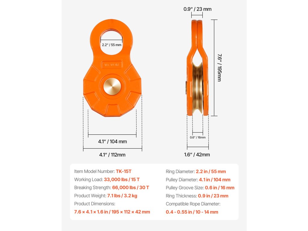 Ez az emelőblokk akár 33 000 font (15T) munkaterheléssel és 66 000 font (30T) szakítószilárdsággal is megbirkózik. Ideális az olyan nehéz feladatokhoz, mint a járművek kiszabadítása és a fák kihúzása, és a munkát könnyen és hatékonyan végzi el.