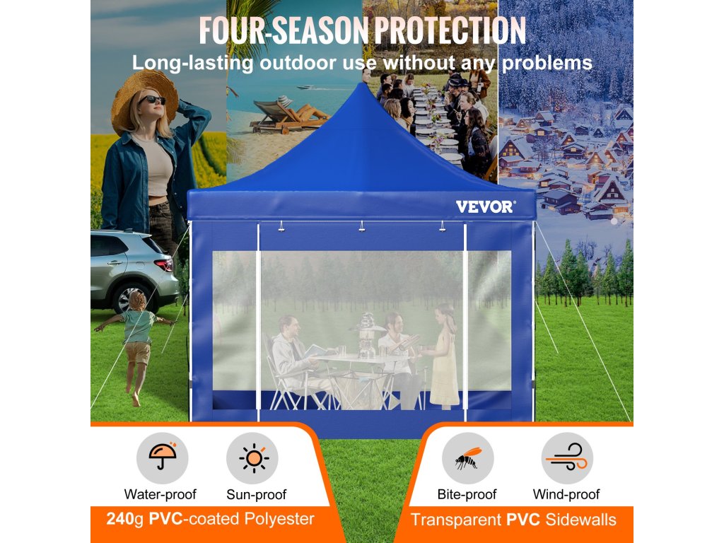Egy azonnali pavilon menedék minden évszakban megvédheti Önt az esőtől, a hótól és a naptól. Az átlátszó oldalfalak lehetővé teszik, hogy jól lásson kifelé, miközben megvédi Önt a széltől és az esőtől.