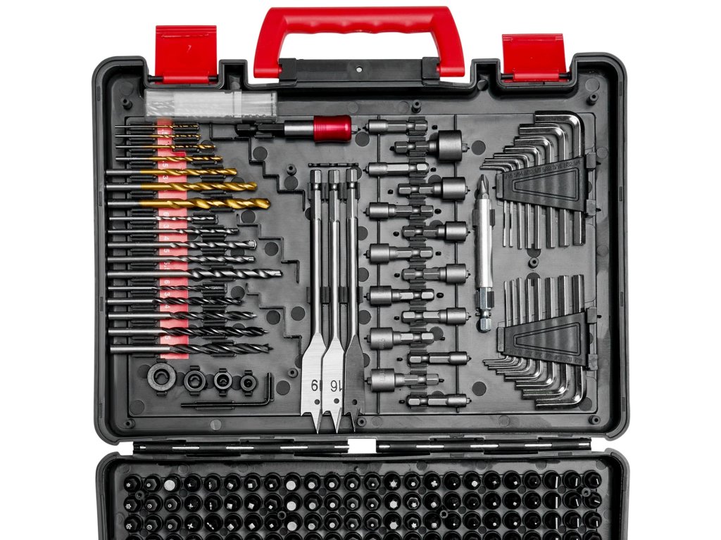 318 darabos fúró- és bitkészlet fához, fémhez, betonhoz, tokban