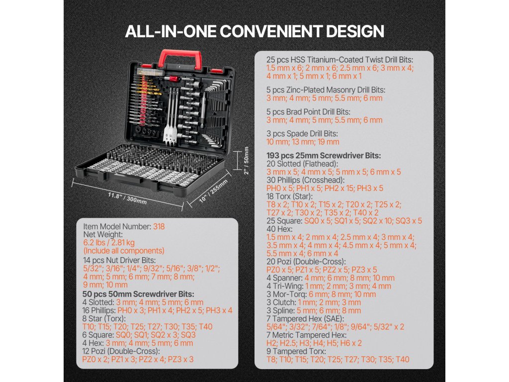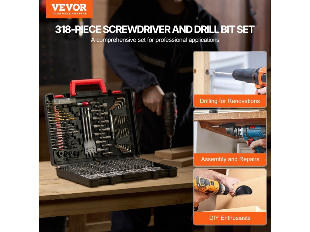 VEVOR 318 darabos csavarhúzó és fúró készlet, hatékony és teljes körű