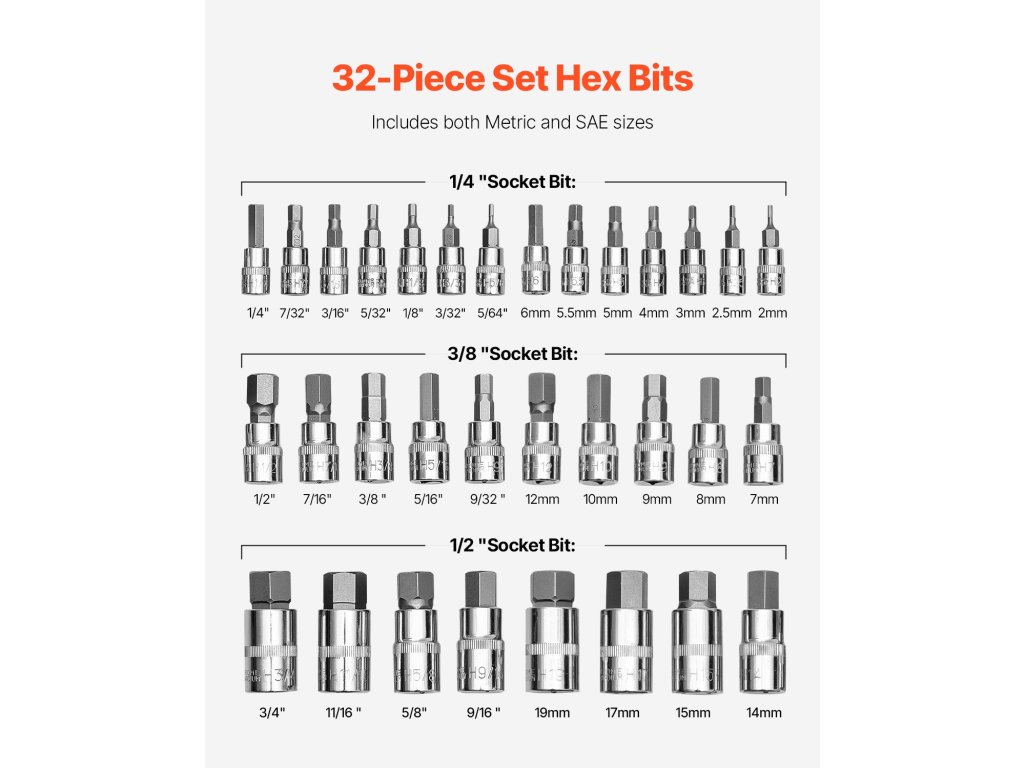 | Termékkonfiguráció | metrikus és SAE bitek 32 db-os készlete |