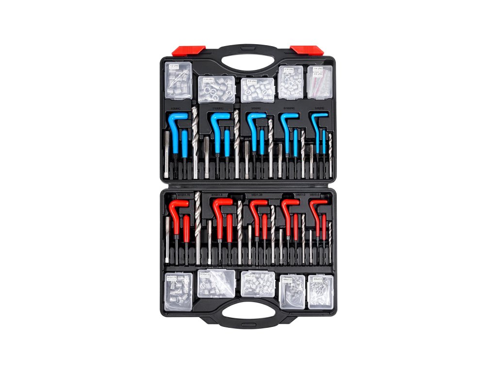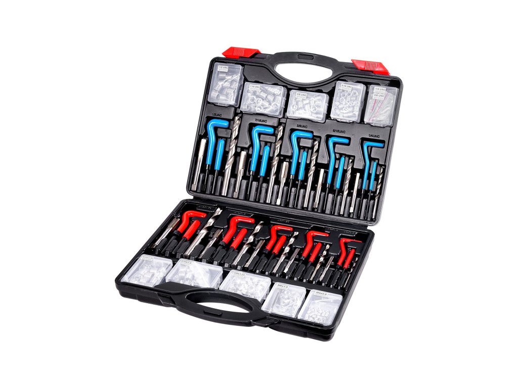 Ez a menetjavító készlet sokoldalú megoldást kínál különböző méretekkel a csíkozott vagy sérült belső menetek helyreállításához. Praktikus és hordozható, és tartósan készült. Többszöri használat után is kiváló eredményeket biztosít, növelve a karbantartás hatékonyságát, így a javítással foglalkozó szakemberek számára nélkülözhetetlen.