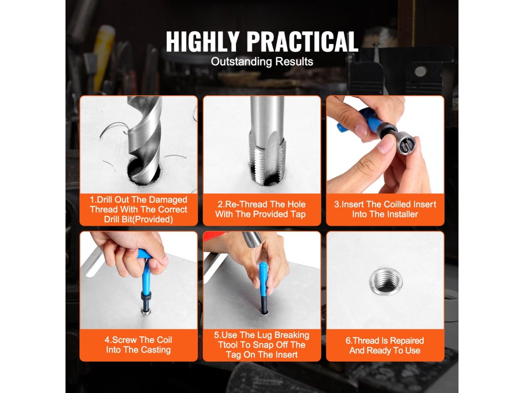Ez a helikopteres menetjavító készlet teljes tartozékkészletet tartalmaz a különböző méretű, csíkozott, keresztirányú vagy sérült belső menetek helyreállításához. A felhasználói élményt helyezi előtérbe, egyszerűsíti az összetett javításokat, és olyan átfogó megoldást kínál, amely minden munkát gyorsabbá és könnyebbé tesz.