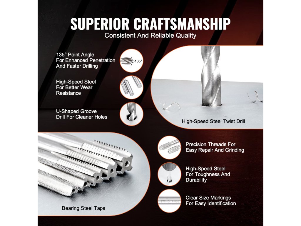 Ez a helikopter menetjavító készlet prémium HSS fúrószárakat és csapágyazott acél csapokat tartalmaz a kiváló kopás- és korrózióállóság érdekében. A tartós szénacél szerszámok ellenállnak a vetemedésnek, míg a 304 rozsdamentes acélból készült menetes betétek erős kötéseket biztosítanak, így kiváló teljesítményt nyújtanak a munkában.