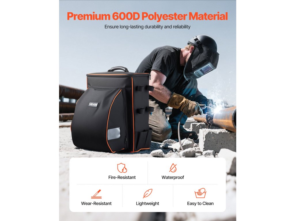 Rendezd és hordozd könnyedén! A VEVOR hegesztő hátizsák nagyvonalú, 35,6 literes kapacitással rendelkezik, amely ideális a hegesztőfelszerelések, hegesztősisakok, hegesztőkabátok, hegesztőkesztyűk és sok más tárolására. A 600D poliészterből készült, tartós és strapabíró, hogy ellenálljon a különböző munkakörnyezeteknek.