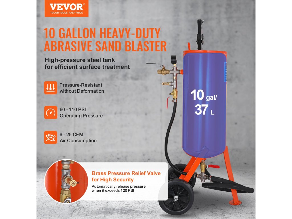 Válassza a VEVOR 10 gallonos, nagy teherbírású homokfúvógépet, és tapasztalja meg az egyszerűbb, hatékonyabb és pontosabb kivitelezést. Lehetővé teszi a nagynyomású felületkikészítést, könnyedén eltávolítja a rozsdát, festéket, foltokat és nagy felületeket políroz, miközben az íves felületek és rések tökéletes csiszolását is elvégzi.