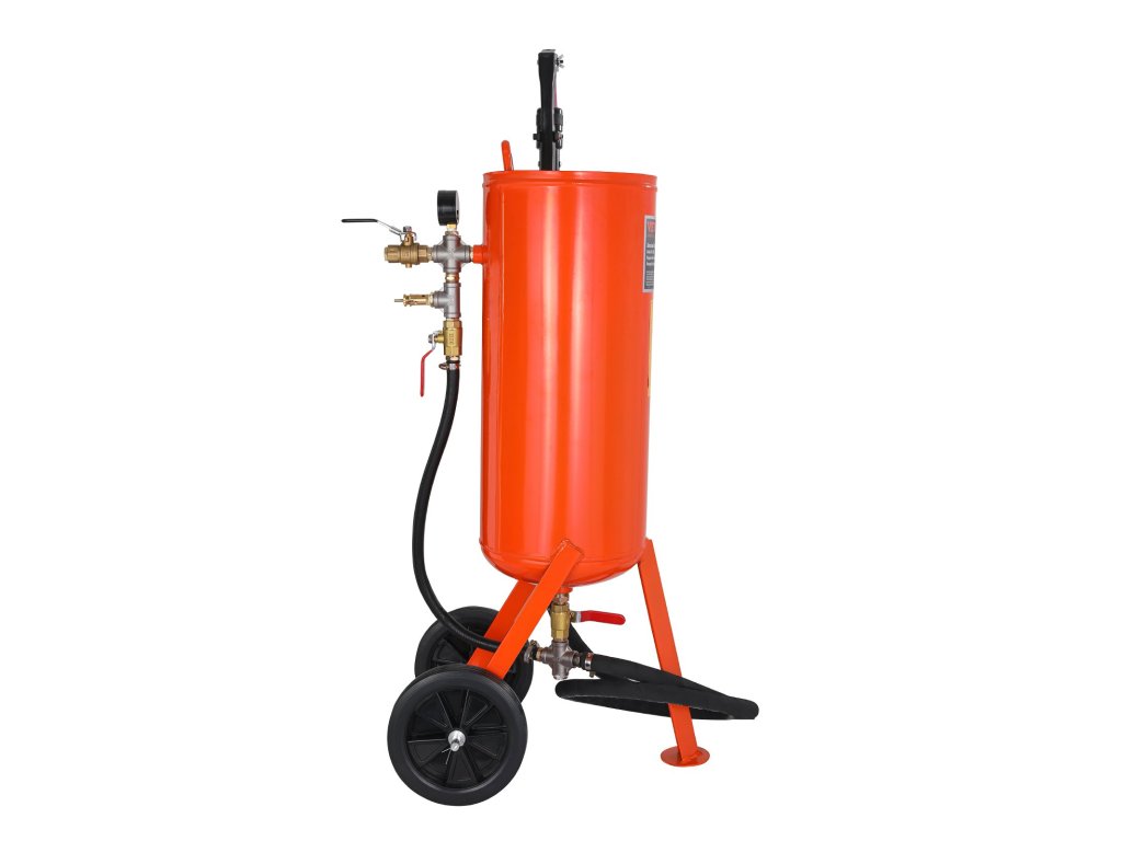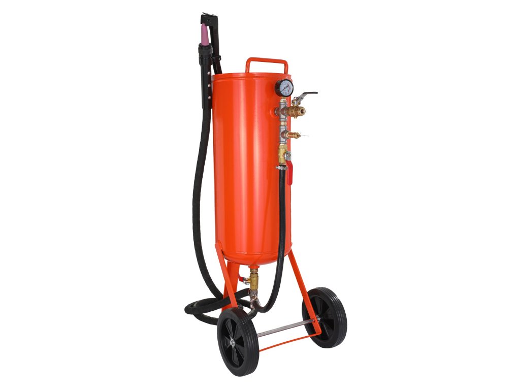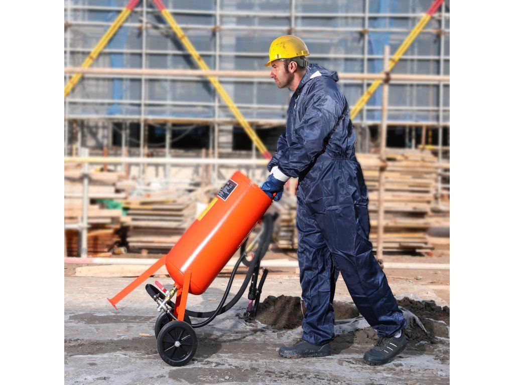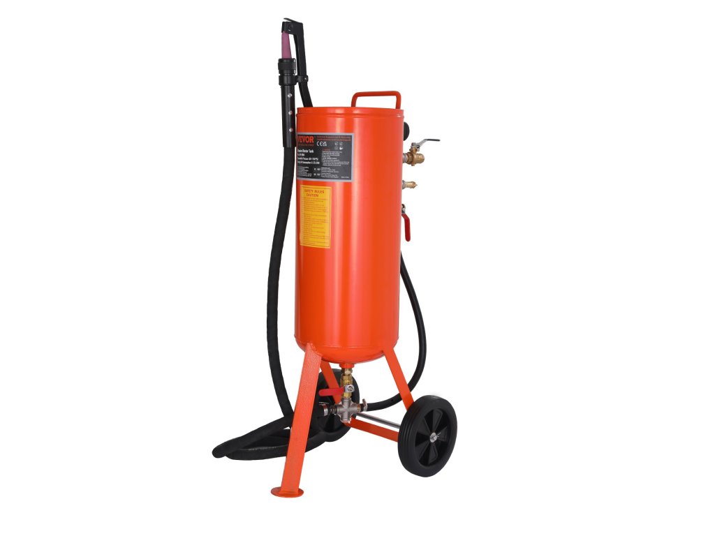 37,9 literes homokfúvó, 60–110 PSI nyomás, 2 fúvóka, 228,6 cm-es tömlő