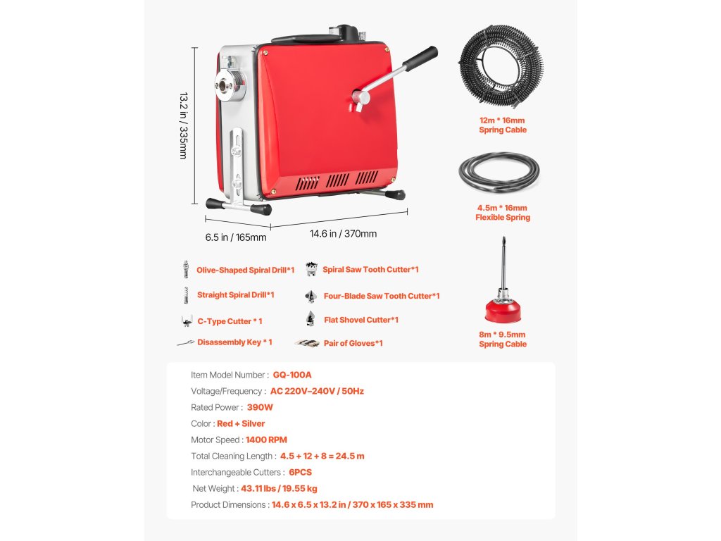 Elege van a dugulásokból, a drága vízvezeték-szerelési szolgáltatásokból és a nem teljes duguláselhárításból? Mondjon búcsút a problémás csőkarbantartásnak! Hagyja, hogy a VEVOR elektromos lefolyótisztító gép 6 vágóval egy csapásra megoldja dugulási problémáit.
